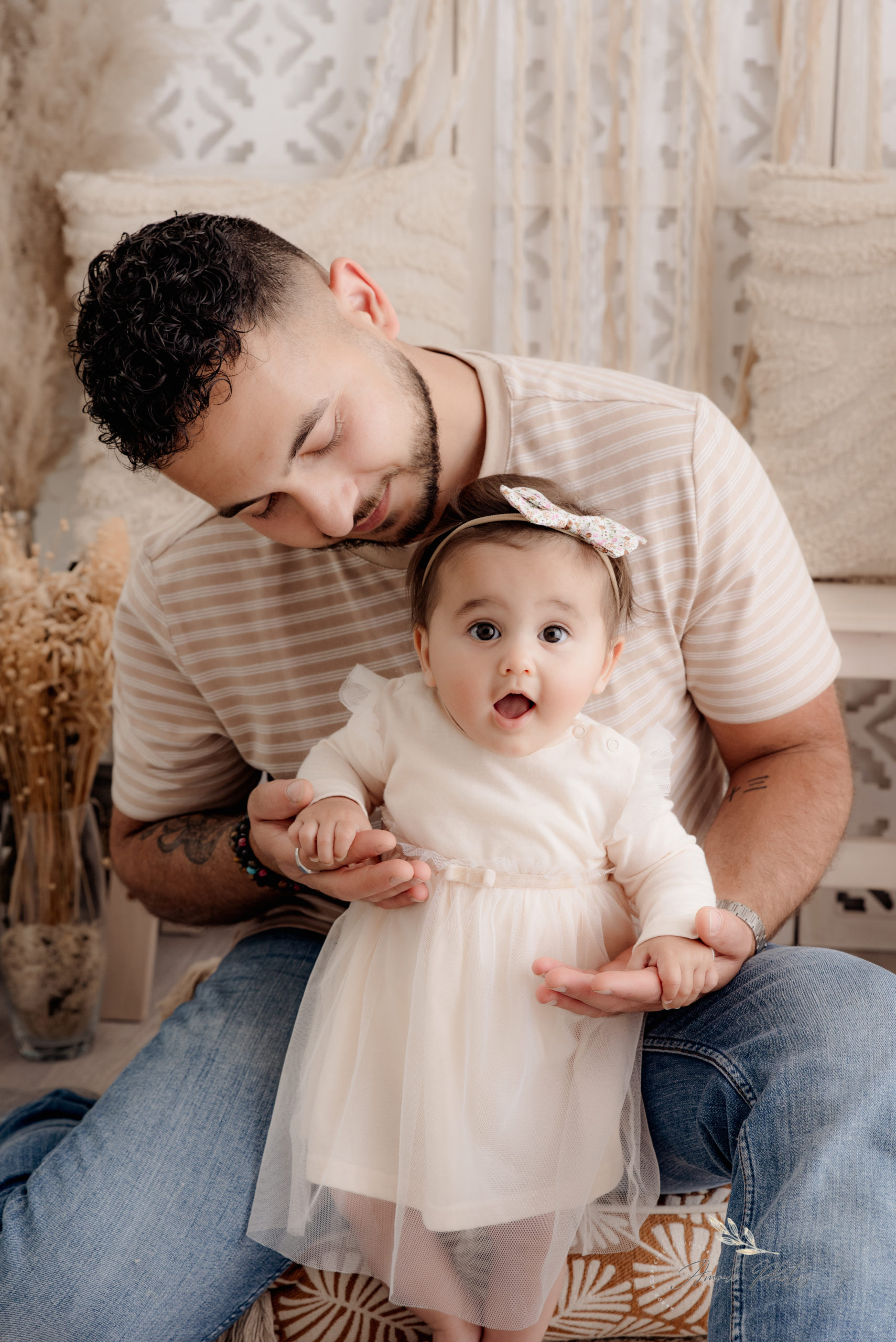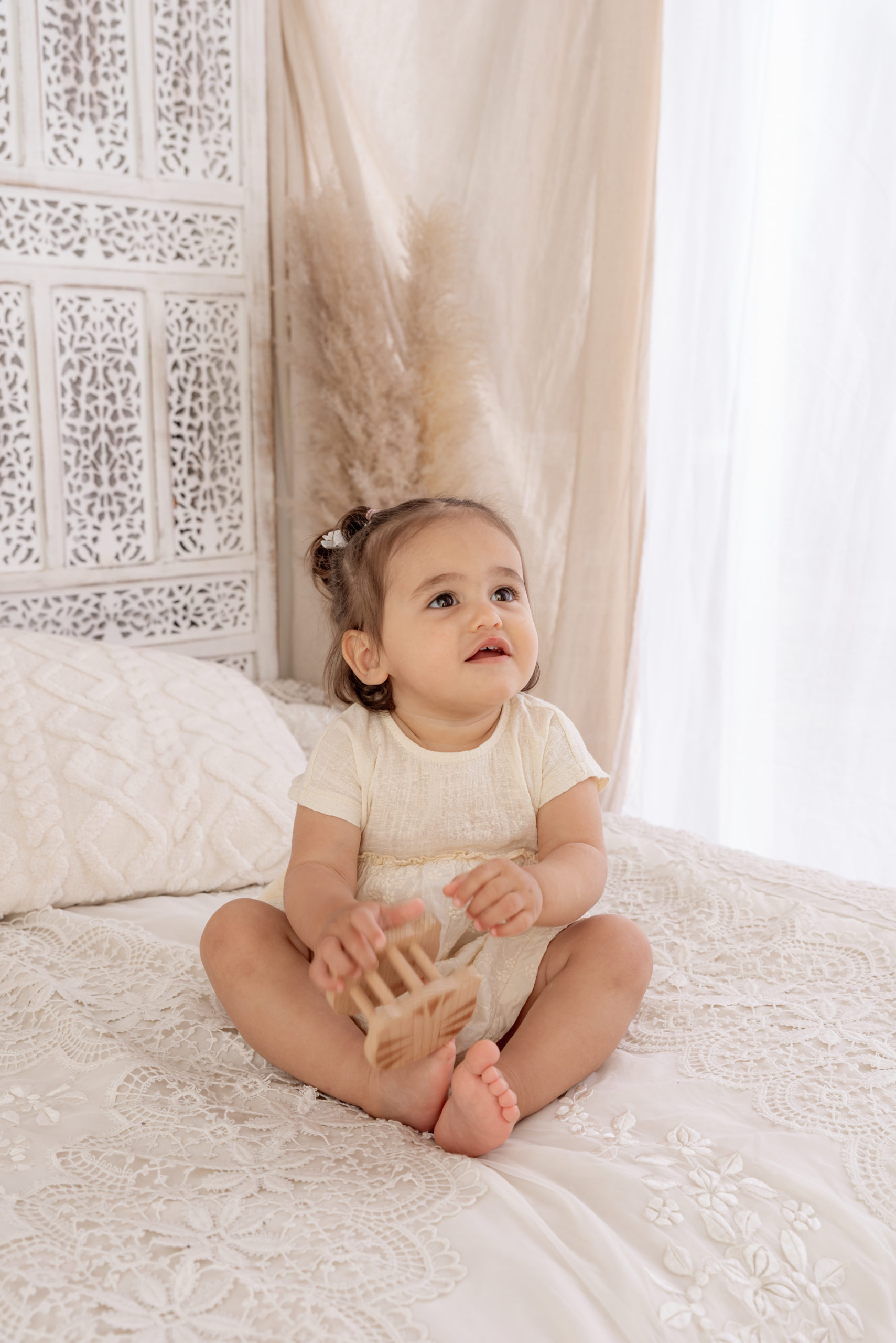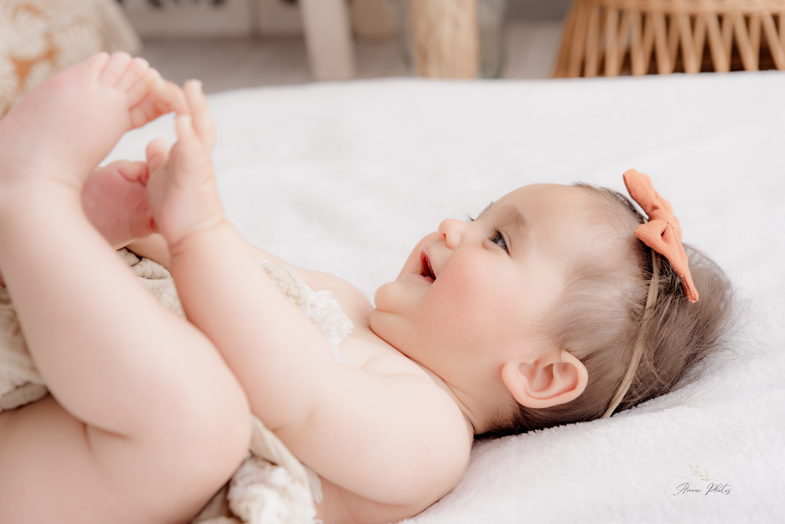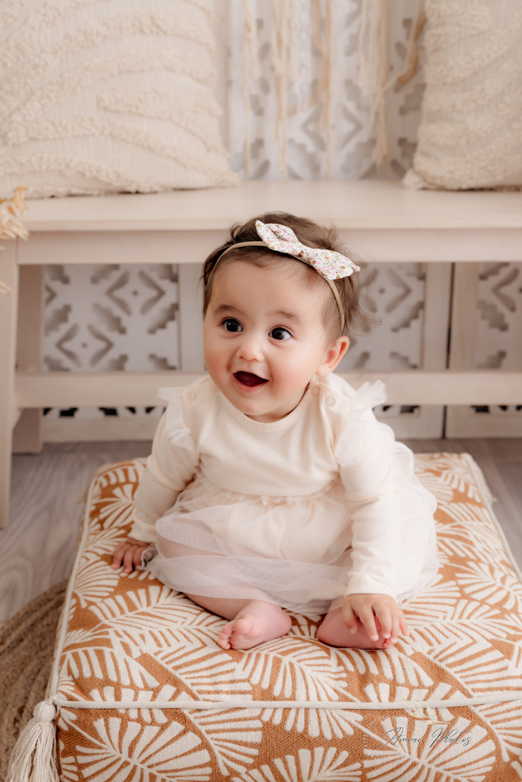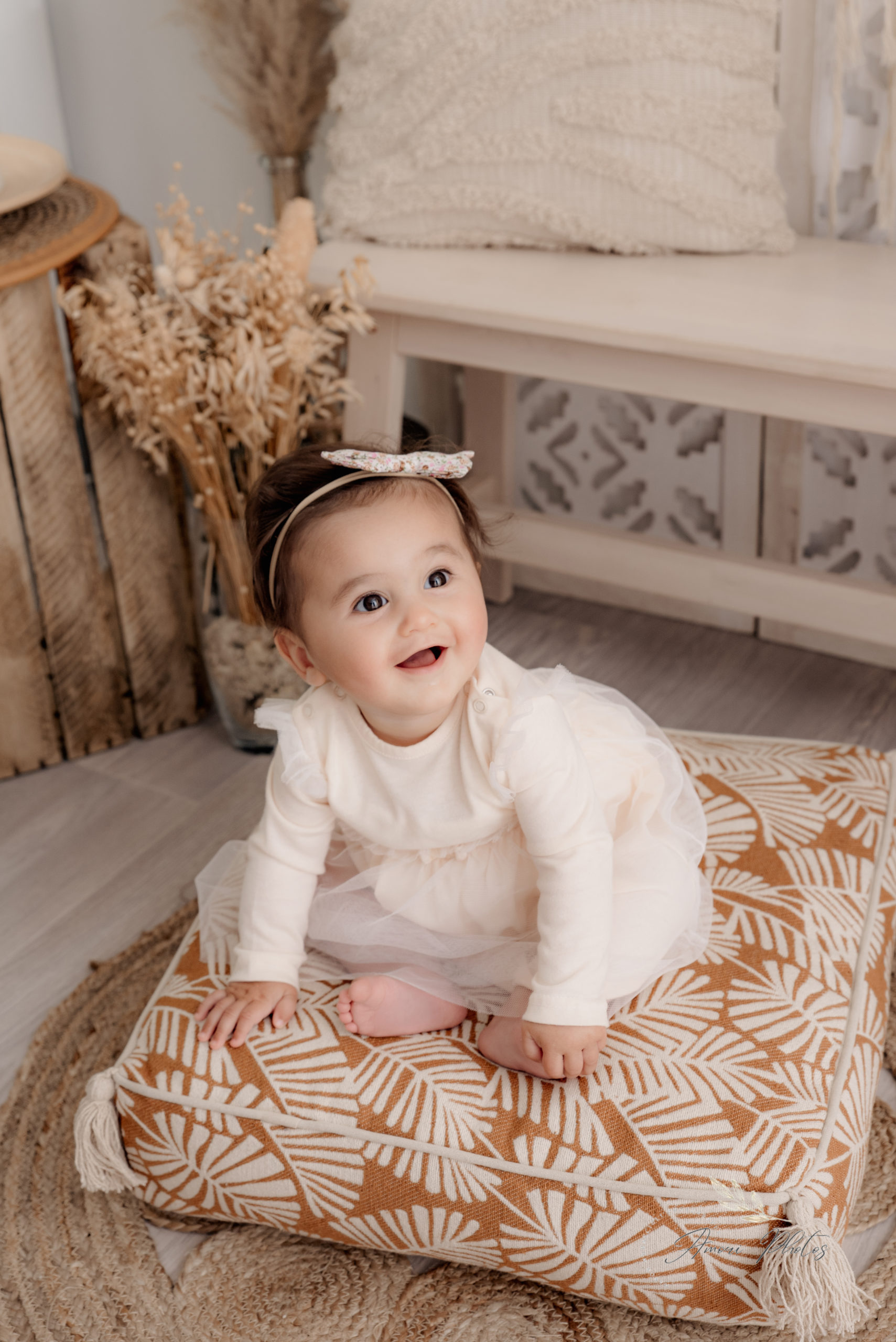 Bienvenue dans mon Home Studio, votre photographe spécialisée dans les photos de bébé à Marignier. Spécialiste du style bohème, je mets tout mon savoir-faire pour sublimer ces instants précieux où bébé découvre le monde, assis et tout curieux.